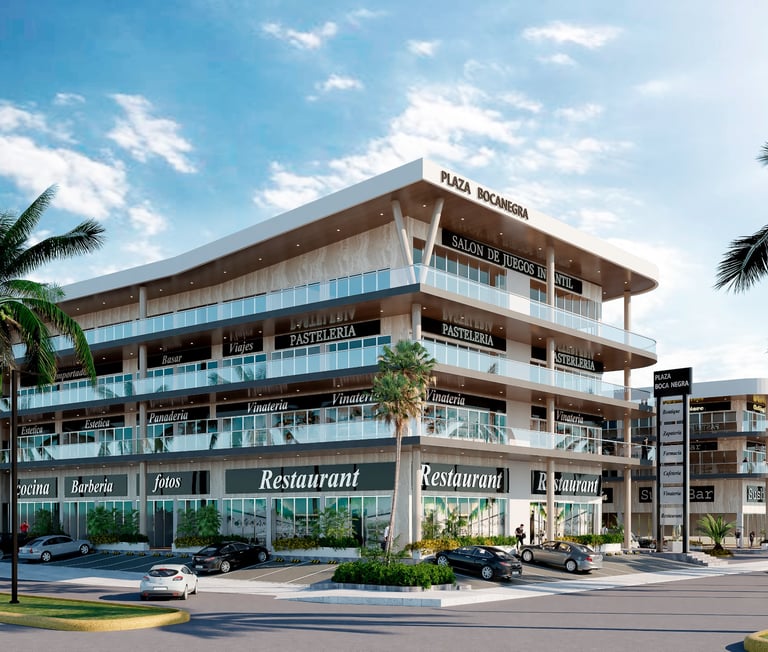 Plaza Boca negra es una plaza comercial de 4 niveles con Locales comerciales a la venta, perfectos para inversión, o ya sea para invertir y ganar rentas o para tu negocio propio.